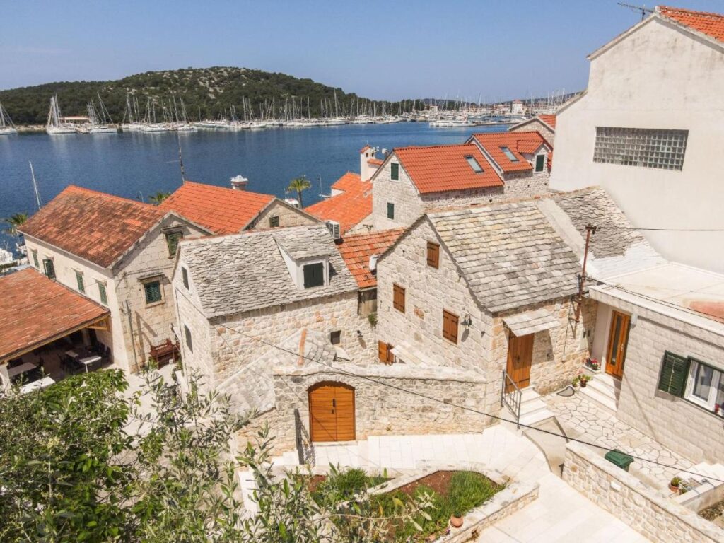The municipality of Rogoznica, located between the well-known towns of Šibenik and Trogir, is actually in Central Dalmatia. Here, the Northern Adriatic separates from the Southern, which also affects the climate. There is a warm and pleasant Mediterranean climate here, perfect for enjoying Rogoznica’s beautiful beaches in summer. Besides the beaches, there is a large marina that creates a very stunning coastal panorama.