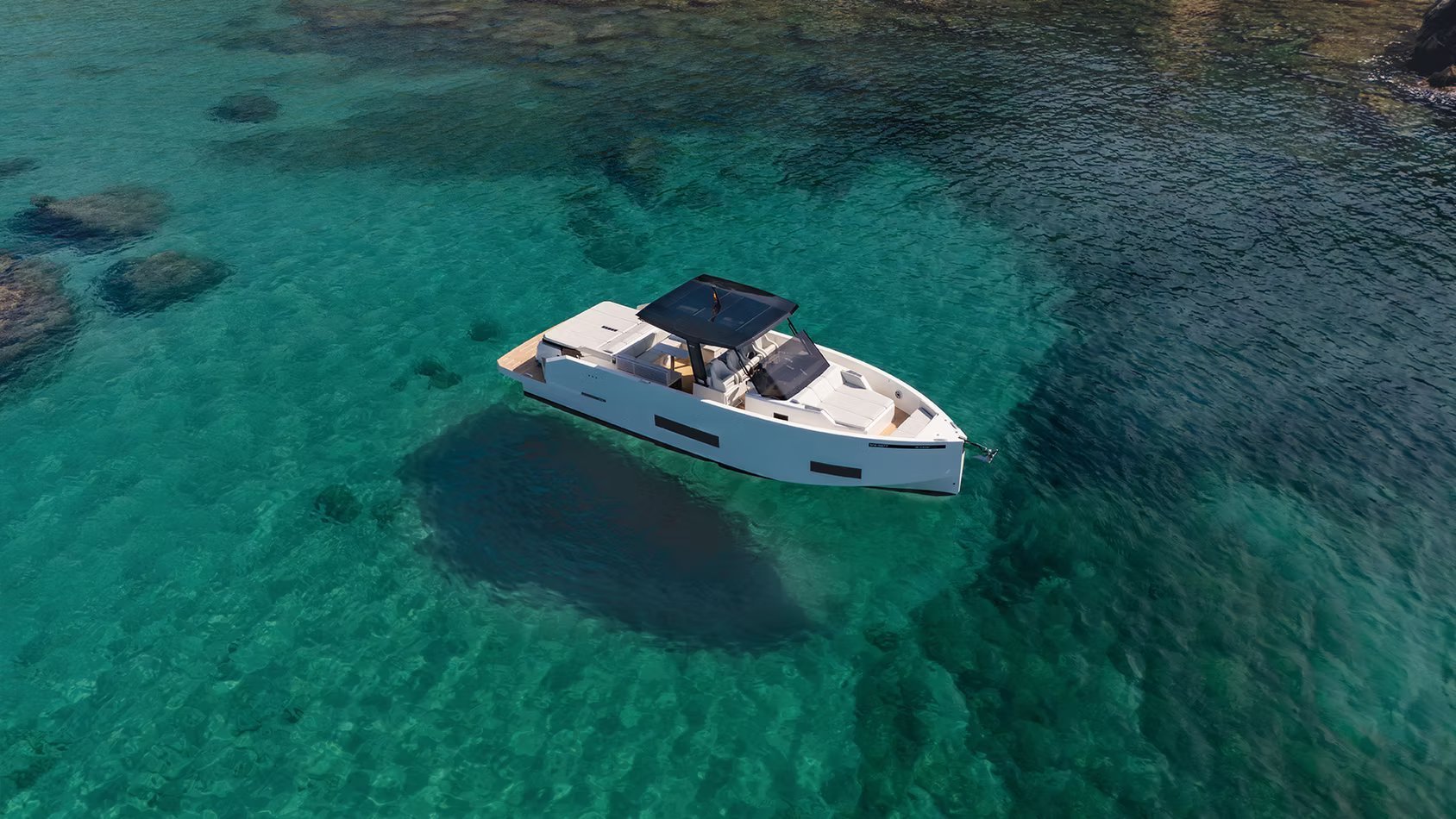 The De Antonio D42 is a luxury motor yacht model produced by De Antonio Yachts, known for its minimalist design and innovative hidden outboard engine layout. The D42 blends performance, comfort, and modern aesthetics, positioning itself as a premium day cruiser and weekender in the 40-foot yacht category.