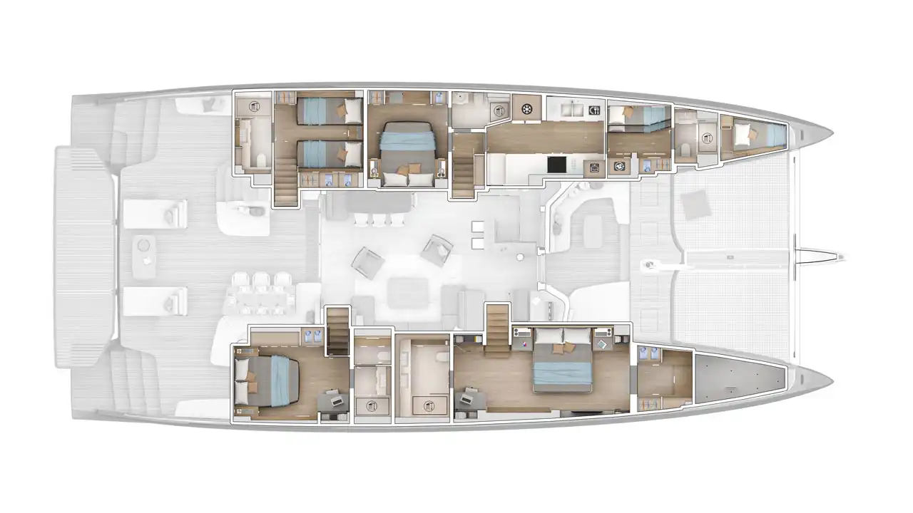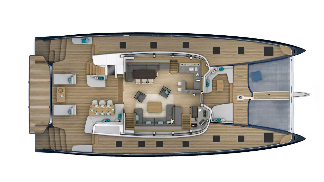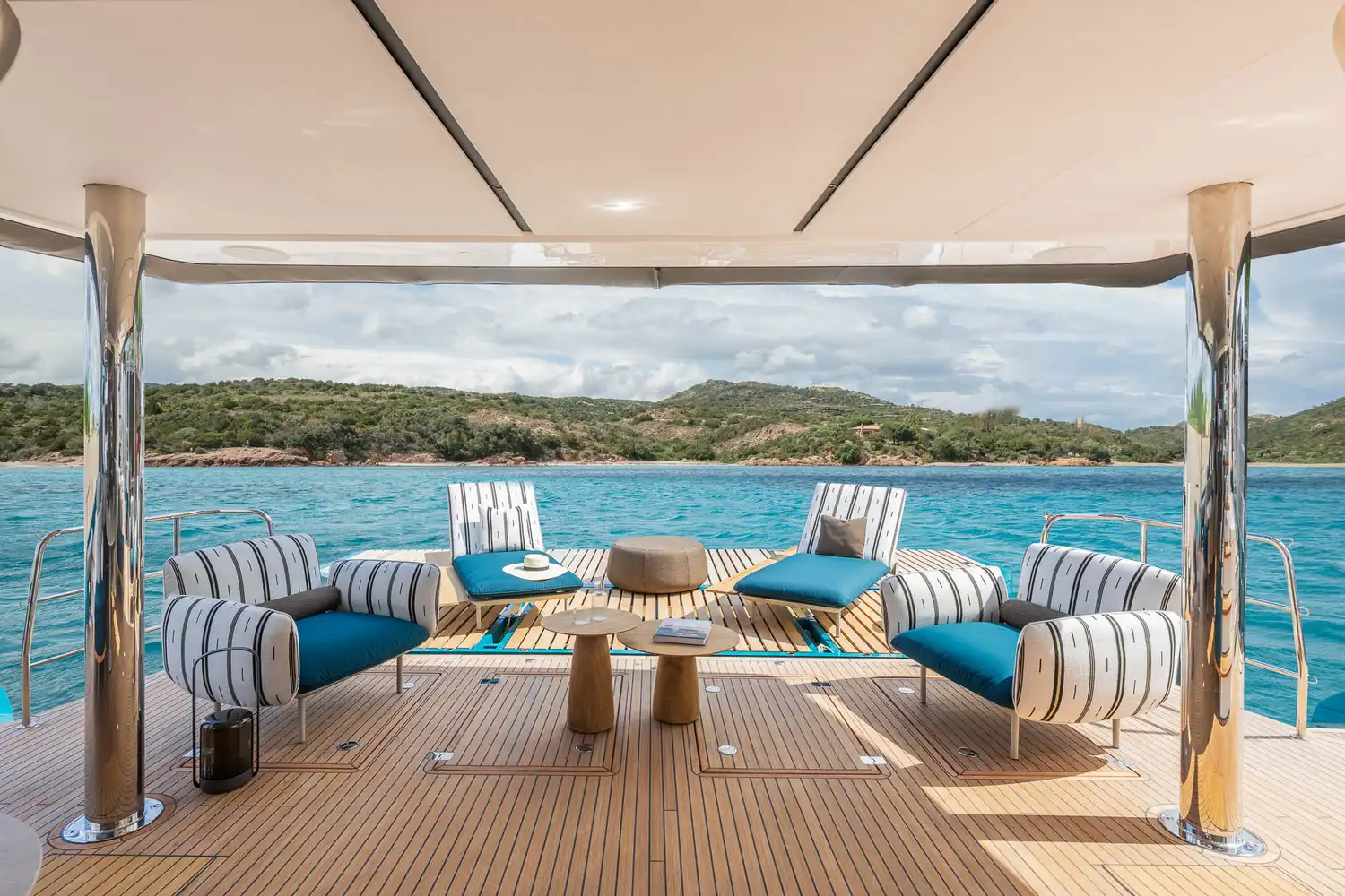 The EIGHTY2 was developed to offer you the best: open access to the sea. Aft, the bathing platform can be up to 22 m² in size when extended and is an extension of the cockpit. The platform has a load capacity of 1.3 tons. It can be adapted to your preferences and cruising plans and has been designed to accommodate a very large dinghy or a dinghy and a JetSki at the same time.
